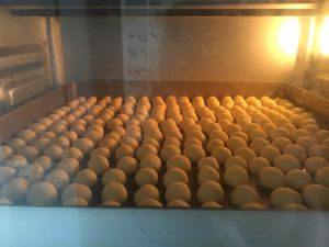 放入蒸箱继续醒发半个小时左右,底下垫蒸布或者油纸,然后烤箱蒸十五分钟,关火五分钟后取出,香喷喷的吃一口吧