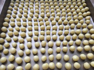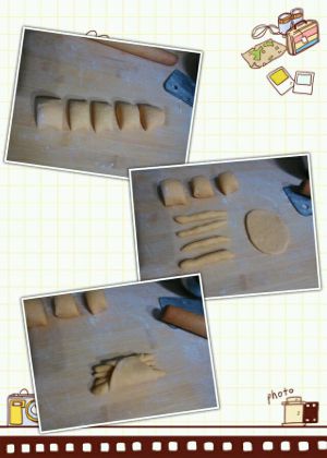 还剩下的一小块面团,分别擀成舌状片,卷起,切四份。