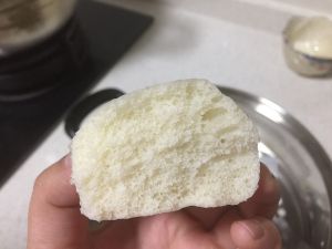 内部组织很松软,孔比较打,没有一般馒头的结实感,皮却很紧实,中和了整个口感。