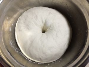 然后放到器皿内发酵,发到2倍大时,手沾面粉在中间戳个动不回收就可以了。