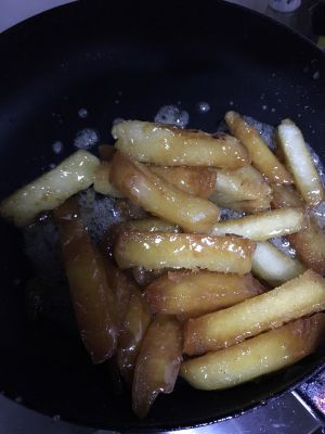 煎(或者炸)完之后,撒上自己喜欢的料,番茄酱、孜然粉、辣椒粉……想吃什么口味就是什么口味。 完美的早餐~
