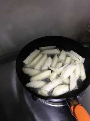 油热后边裹蛋液边放,不要一直浸在蛋液里啊啊啊啊,馒头吸蛋液很快的。如果喜欢嫩一点,火要放小,当然,如果想脆一点就多放点油,热度高的时候让它在油锅里多打个滚儿。