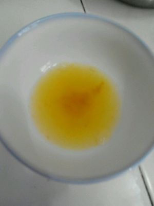 蒸熟后的南瓜会有少许的蒸馏水,也就是南瓜水,把南瓜水倒出碗中,放温后加入酵母粉搅拌均匀。