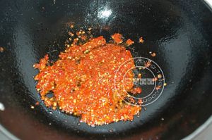 剁椒加适量白糖和鸡精,用少许油煸炒出香味.