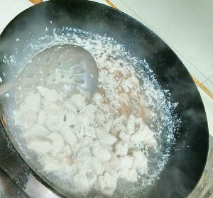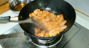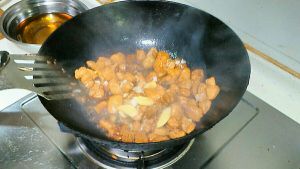 放入肉块,翻炒,至肉块泛黄