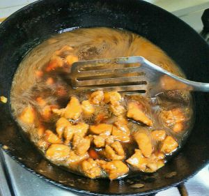 起锅前放盐和冰糖,大火收汁。
