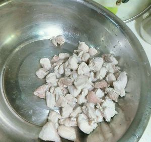准备好五花肉洗干净,切小块备用。