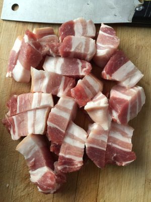 红烧肉用水煮熟,放在边上晾下水份,这个照片不对哦,我忘记照煮的照片了