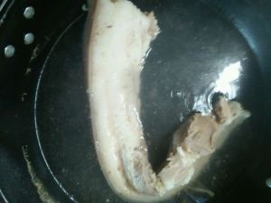煮好后,切好,锅里放油炒,加自己喜欢的各种香料,不能少糖和酱油。