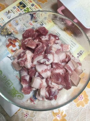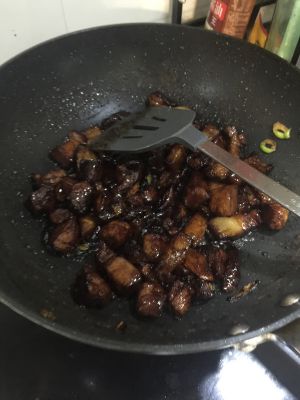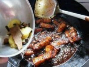 冰糖化掉之后放入准备好的瘦,加入葱姜大料八角