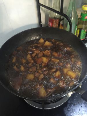 加入老抽或者红烧酱油,酱油不小心放多了……-_-#