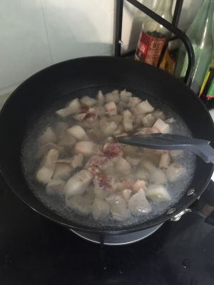 放在水里煮十分钟,撇去浮末,倒入一些料酒去腥