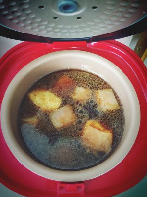 定时两个小时以后,就盖着盖,把电源拔了慢慢入味,第二天吃的时候还可以下点蔬菜进去,红烧肉的美味就不多说了,这个鸡蛋简直了^_^
