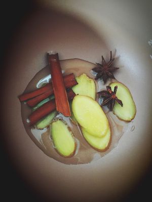切肉的时候把油热好,把香料加入锅里爆香,电饭煲比较慢,不要着急一定要炒香,闻见香味就可以啦