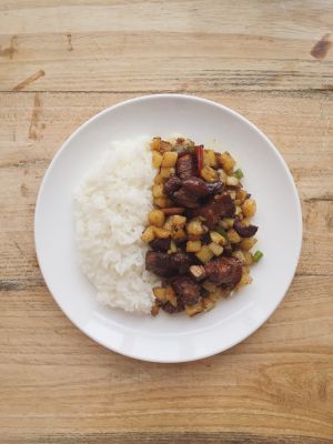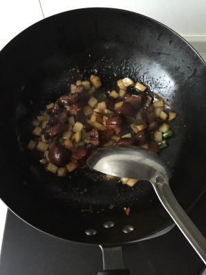 加入红烧肉,继续翻炒。等肉差不多热透了出锅