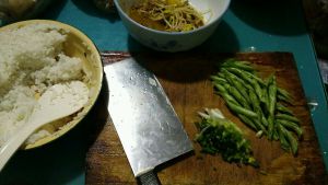准备食材,小葱切好,四季豆切好备用