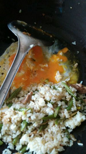 把剩饭拌在蛋里
