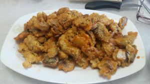去骨,切块,(鸡蛋,淀粉,白面,水,和成糊)。