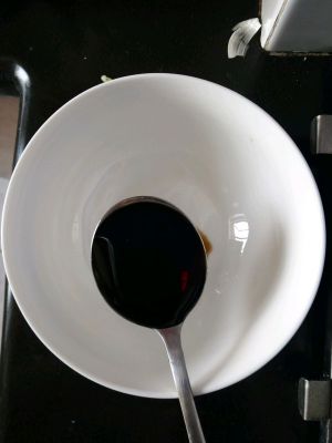 后面所放调料都正常汤匙来说哈。我忘记拍图了。生抽四勺量,香醋一勺,藤椒油一勺(没有藤椒油自己起锅用油煸会花椒就好),万能的老干妈风味豆豉带辣油一勺,香油几滴。把之前切好的蒜沫香菜等等拌进小碗