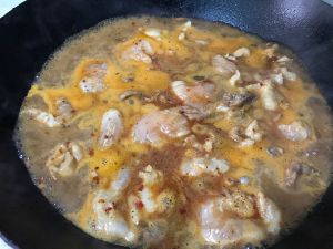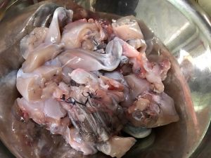 将牛蛙斩件,用盐料酒蛋清淀粉抓匀。