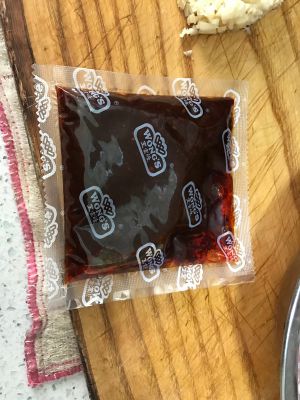 水煮鱼料包,用的老公家麻辣江湖料包,很辣,先用腌鱼料包跟料酒将片好的鱼腌制二三十分钟