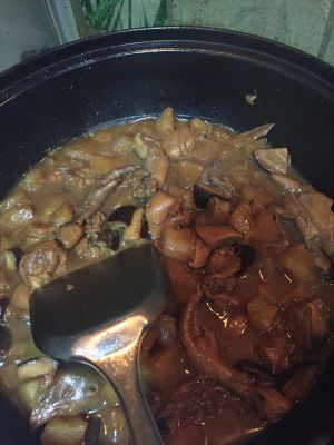 加入土豆块焖煮至土豆绵软,喜欢脆点的可以少煮一会,最后加入盐和鸡精调味