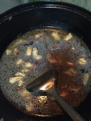 放入适量老抽和冰糖,大火煮开后转小火焖制十分钟