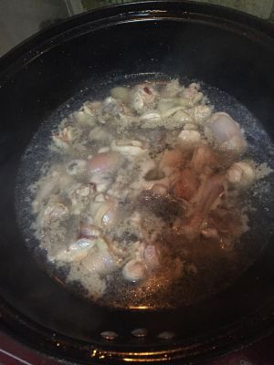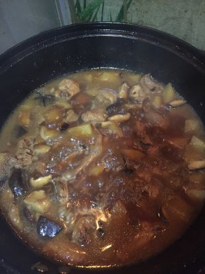 除了菜,鸡块葱姜蒜酱料都下锅!白开水700毫升!发火煮开小火慢炖,大概四十分钟