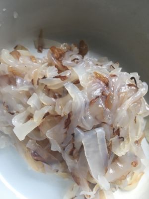 洗净用凉开水泡一会后,沥干水分,切丝或片状。