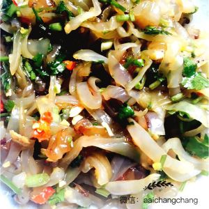 拌匀,美味、脆爽的凉拌海蜇就做好了。