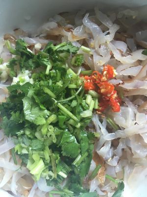 最后加入浸泡好的海蜇头搅拌均匀放入冰箱冷藏半个小时即可食用。