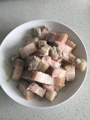 取上好的带皮五花肉洗净,切成合适的均匀肉块。