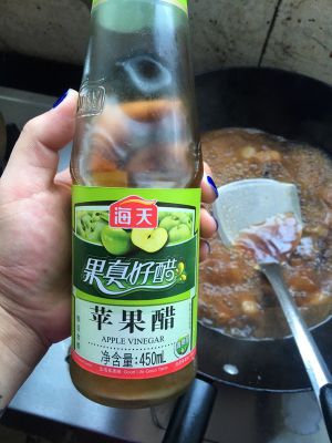 调味和咸味调够以后加水盖过猪肉,小火盖盖慢慢炖着,醋加热会蒸发,所以这个不是调味,只需要一点点就可以,放醋煮肉肉质会松软些,酸味是最后上桌前再加的