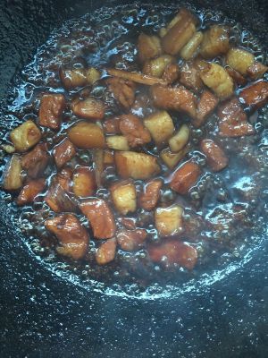 煮至肉酥烂,汤汁快干的时候再翻炒一下即可关火了