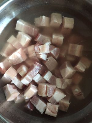 五花肉提前冷水泡2小时。