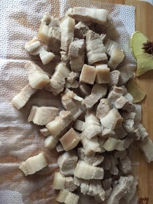 放了五花肉块煸炒