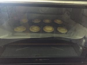 先把烤箱180度上下烘烤预热10分钟后,再把半成品放入,180度上下烘烤20~25分钟,中间可以自行调节时间。