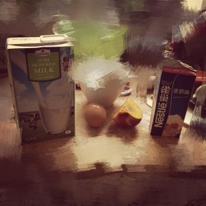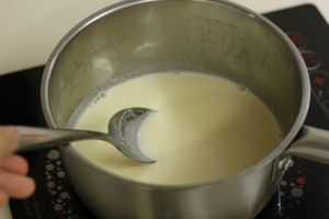 准备好材料,将奶油加热,加入牛奶,砂糖,搅拌一下关火(注意时间不要长),然后放入蛋黄炼乳搅拌均匀