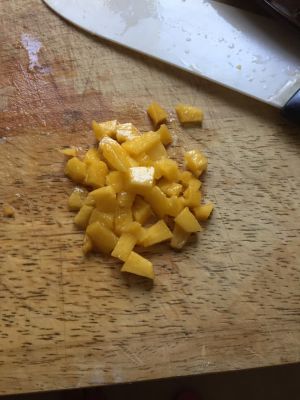 黄桃切块,挞液最好过一遍筛