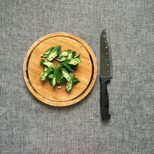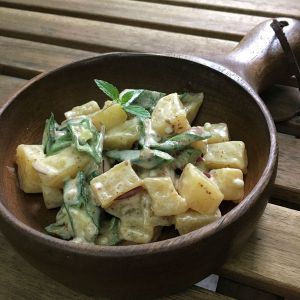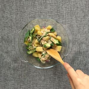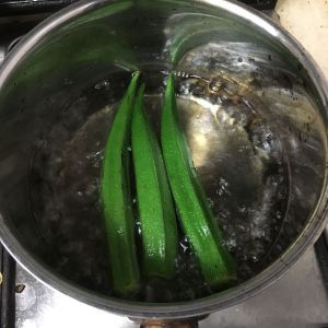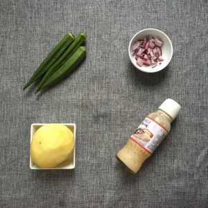 土豆1个、秋葵3根、洋葱末少许、色拉酱适量
