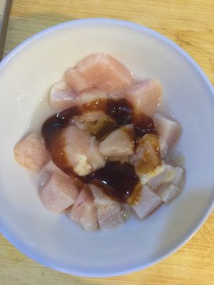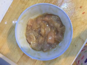 加淀粉拌匀上浆 事实证明这样处理肉质真的会变嫩 我这边是切成丁 感觉能更加入味