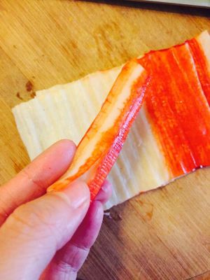 每根蟹肉棒找到连接处,一般都是在颜色交接的地方。