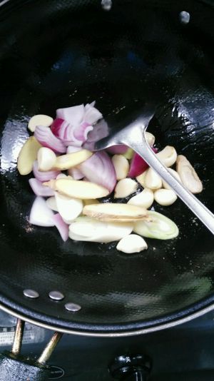 锅上火烧热加油,下葱姜蒜洋葱稍炒一下