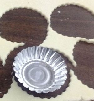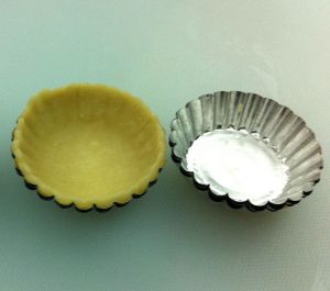 将圆面块放入蛋挞杯内,先按底再按周边最后修上端。再放入冰柜冷藏一小时以上!