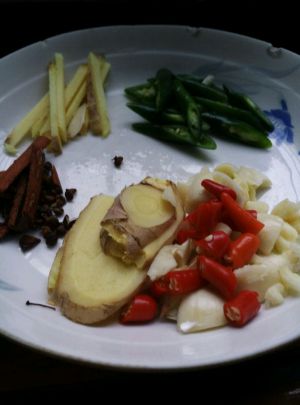 倒水盖过鸡爪,之前泡香菇的水也倒进来,加点料酒(我家的二锅头,),倒入生姜香叶桂皮八角花椒,加老抽生抽,大火烧开后转小火闷制。