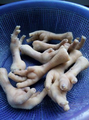 鸡爪洗净去指甲,再次洗净。