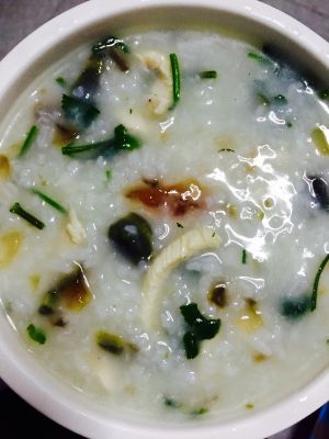 粥粘稠后,放热皮蛋、肉丝,姜丝,2/3的葱花,继续煮5分钟左右即可,中途搅拌 吃之前撒入剩下1/3的葱花比较香