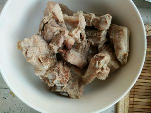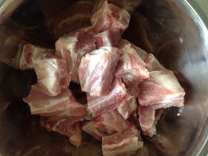 锅内加水烧开,放入排骨,稍煮片刻去除血污,待用。