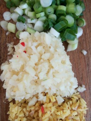 放油,葱姜蒜,辣椒,花椒,下锅炒出香味