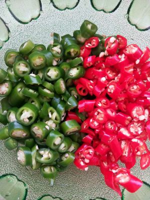 放入蒜末,要很多,这样会很香,喜欢吃辣,多放泰椒丁,我家是放很多,辣的很过瘾!最后放一点香菜段,出锅!!!